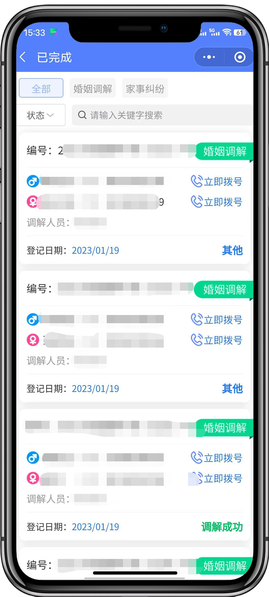 渦陽(yáng)婚姻家事調(diào)解小程序二維碼?貫徹落實(shí)全國(guó)、省關(guān)于做好婚姻家庭糾紛預(yù)防化解工作意見(jiàn)文件精神的一項(xiàng)重要舉措。旨在以建立婚姻家庭糾紛調(diào)解中心為抓手,更好的開(kāi)展婚姻家庭糾紛調(diào)解工作,達(dá)到預(yù)防化解婚姻家庭糾紛、促進(jìn)家庭和睦、維護(hù)社會(huì)和諧穩(wěn)定的目的。調(diào)解員線上接單調(diào)解婚姻家庭糾紛。