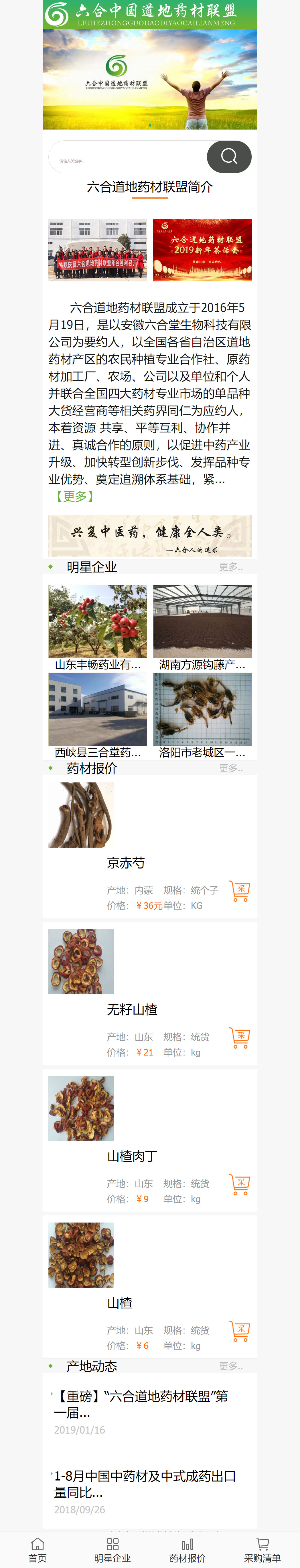 六合道地藥材聯(lián)盟成立于2016年5月19日,是以安徽六合堂生物科技有限公司為要約人,以全國(guó)各省自治區(qū)道地藥材產(chǎn)區(qū)的農(nóng)民種植專業(yè)合作社、原藥材加工廠、農(nóng)場(chǎng)、公司以及單位和個(gè)人并聯(lián)合全國(guó)四大藥材專業(yè)市場(chǎng)的單品種大貨經(jīng)營(yíng)商等相關(guān)藥界同仁為應(yīng)約人,本著資源 共享、平等互利、協(xié)作并進(jìn)、真誠(chéng)合作的原則,以促進(jìn)中藥產(chǎn)業(yè)升級(jí)、加快轉(zhuǎn)型創(chuàng)新步伐、發(fā)揮品種專業(yè)優(yōu)勢(shì)、奠定追溯體系基礎(chǔ),